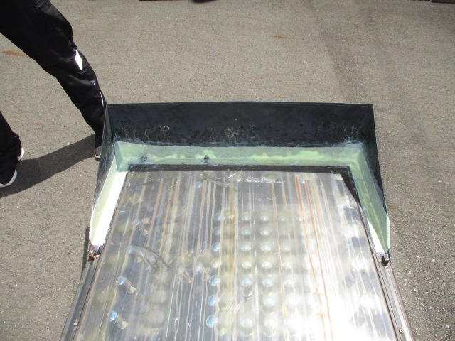 - 紫外線硬化FRPシート「ソーラーパッチ」を貼り付ける。