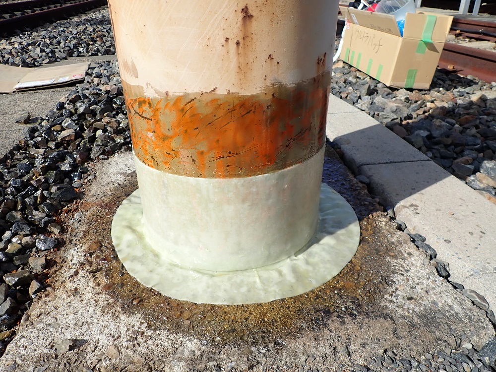 - 砂礫の衝突などによる塗膜の破損対策: 腐食発生・進行の懸念をFRPライニングにより解消。